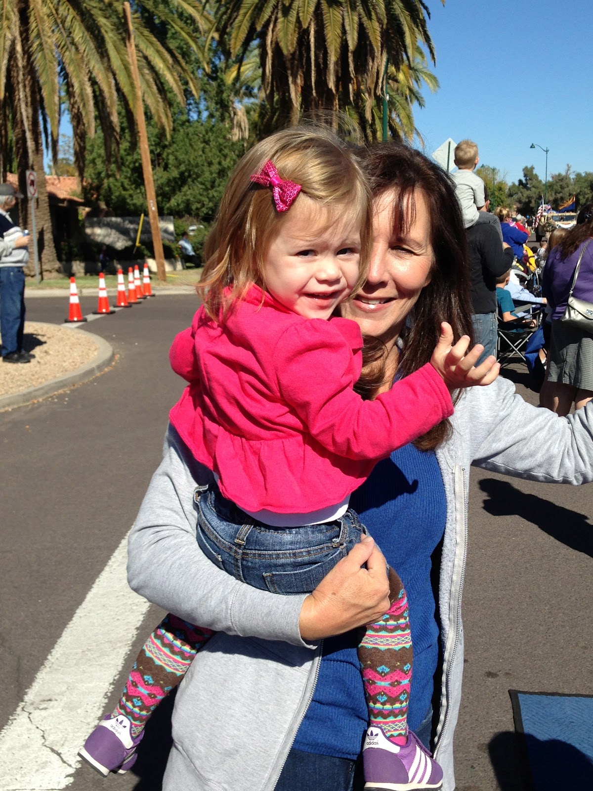 The month of November came and went in the blink of an eye. We started it off with the Veterans Day Parade in downtown Mesa! The kids loved all the parade festivities, and then we ate at one of my favorite spots Sweetcakes! Jons parents Marni and Eric came for a visit in the middle of the month. We love visitors especially from loved ones. The kids had a wonderful time getting to know their Grandma and Grandpa Anderson from Canada better. We played at the park, went out to eat, saw the new Gilbert temple, and went to the Mesa Temple lights! While they were here Wyatt picked up a new talent... He now crawls all over. He will even chase the kids down and make them laugh. He wants to be everywhere his big brother and sister are. Also he will crawl all over the house to find out where mom is at. He is eight months old now and has four teeth, beautiful ivory skin, walnut brown hair, blue eyes, and he is a very big boy! He will say mama, dada, and babbles in his baby talk. He doesn't like to sleep through the night anymore to his mommy's detriment and we have had a rough time figuring out why he is waking up so often now. Other than that though you are a Joy and a light to your family. Bentley loves school and making art projects. He has made so many friends and his teacher always says what a great kid he is...but we already knew that:) Bailey is active as usual, but I have learned to channel some of her energy into helping me around the house. I give her a mop and she follows me around "cleaning" while I am getting done what I need to. She loves to tease her brothers, and she loves to prance around and perform. She can throw a great tantrum and starts to cry every time we tell her she can't do something. She has started to show interest in potty training and pretty much goes all on her own.